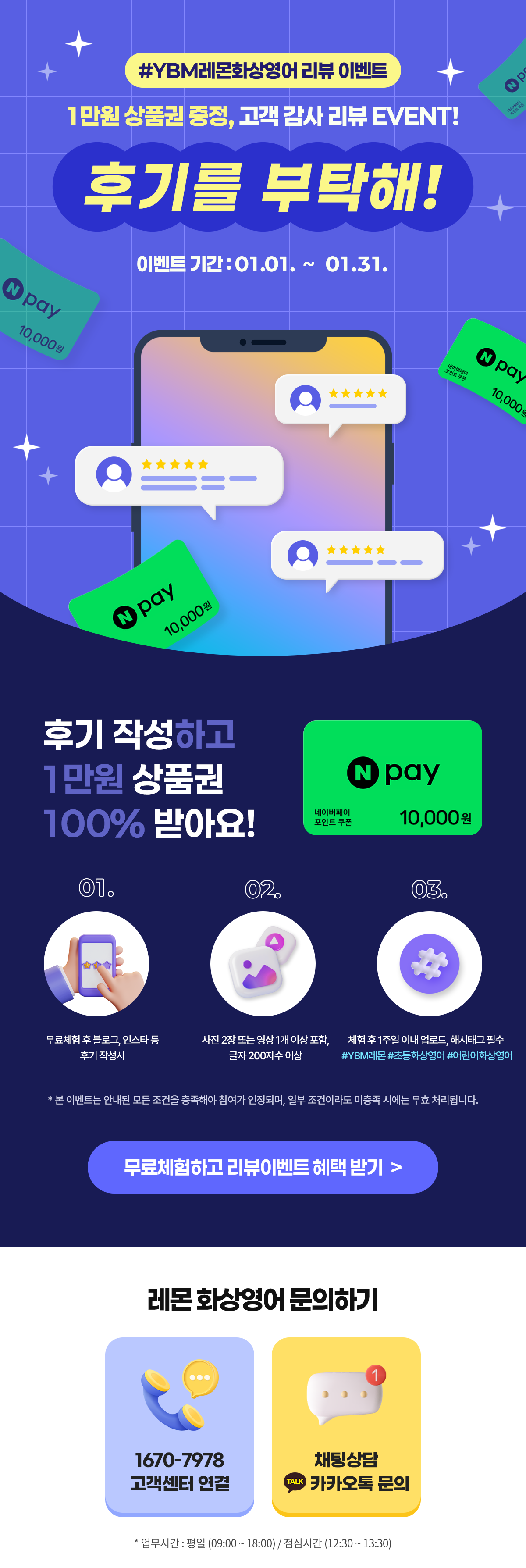 - 필수 해시태그: #YBM레몬 #초등화상영어 #어린이화상영어